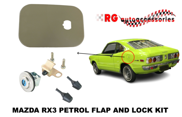 MAZDA SEDAN OR COUPE METAL FUEL FLAP COVER AND LOCK KIT TO SUIT RX3 / 808 12A / 1OA