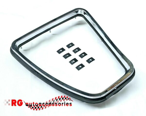 - This kit includes 1 x Plastic chrome surround 1 x Backing plate 8 x backing plate mounting clips .